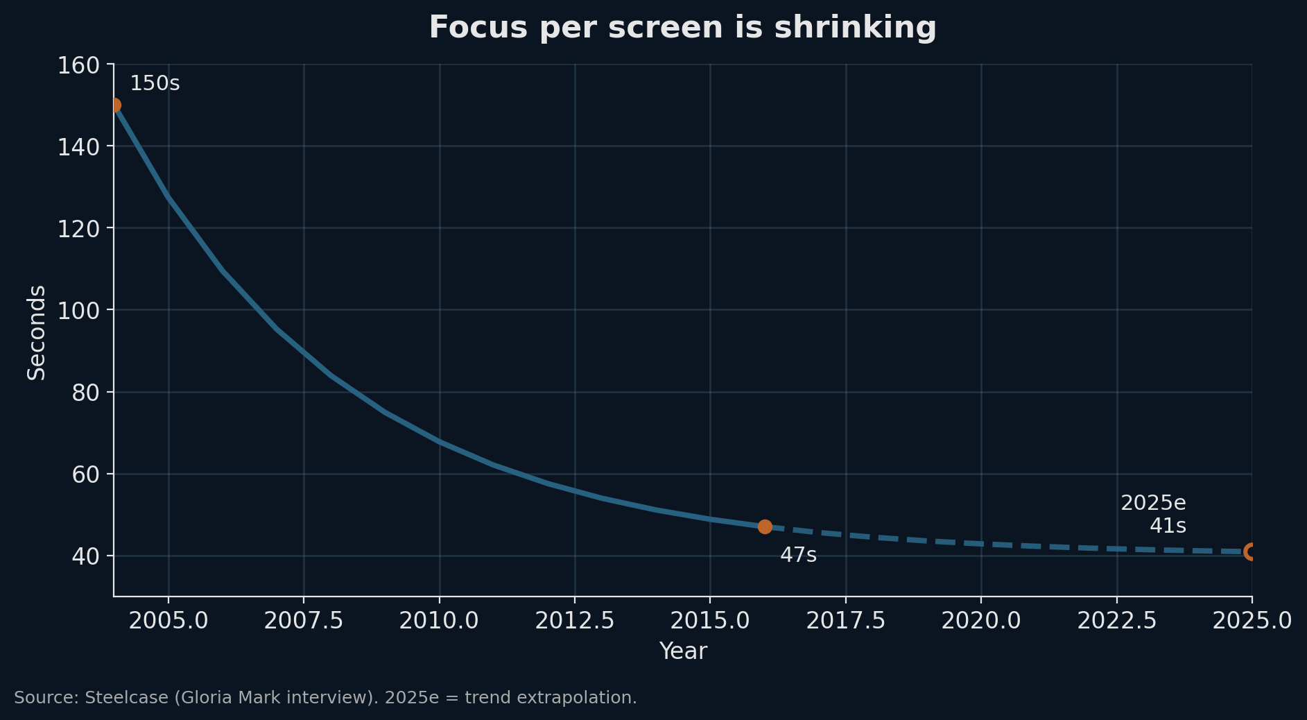 UCI’s research showed that in the early 2000s the average time people stayed on a single screen was 2.5 minutes. Today, it is less than 47 seconds. What this means is with an abundance of alternatives, discovery matters a lot. Content comes to you, and you don’t “decide” to seek it.