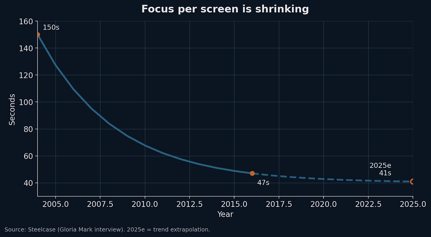 Anything in the middle is difficult to retain users since it’s not developed enough to become a habit but not short enough to capture a moment’s attention and quick dopamine hit. The market for attention is saturated, and feeds are optimized for constant context switching. This means that anything “mid-length” is hard to retain because it’s not instantly gratifying but also not a daily habit.